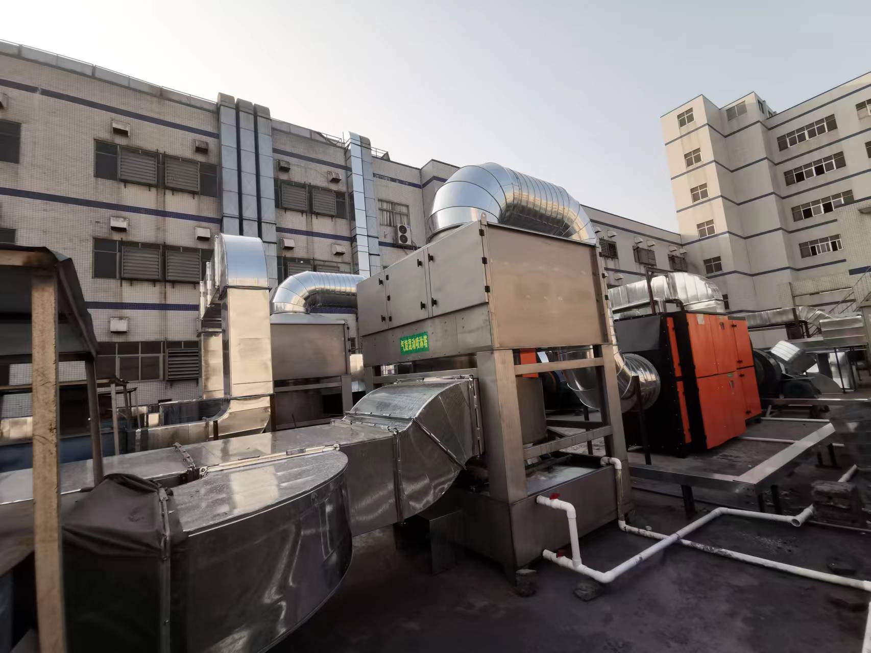 2.、在填料表面上,氣液兩相充分接觸吸收中和反應,以吸附廢氣中所含的酸性或堿性污物。酸霧廢氣經過凈化后,再經除霧板脫水除霧后將清潔氣體從風機排入大氣。吸收液在塔底經水泵增壓后在塔頂噴淋而下,后回流至塔底循環使用。